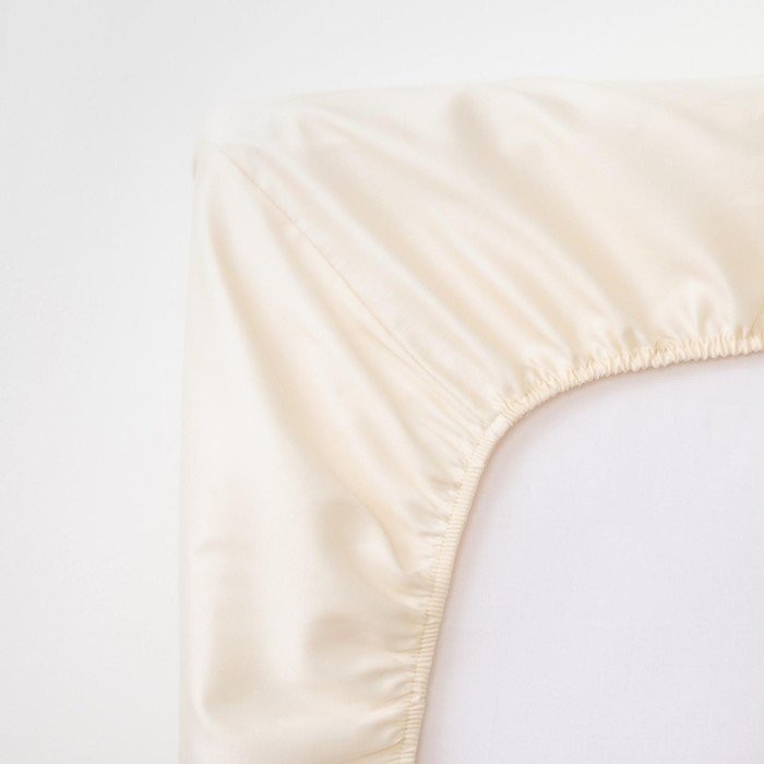 Простыня на резинке Этель 160*200*25 см, цв. бежевый, 100% хлопок, мако-сатин, 128 г/м²