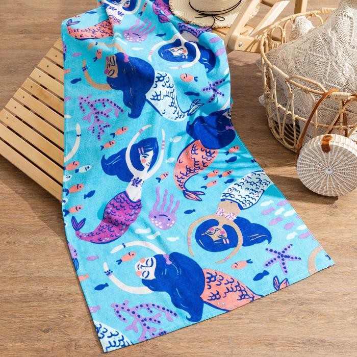 Полотенце «Русалки» 70*140 см, велюр/махра 350гр/м2, 100% хлопок