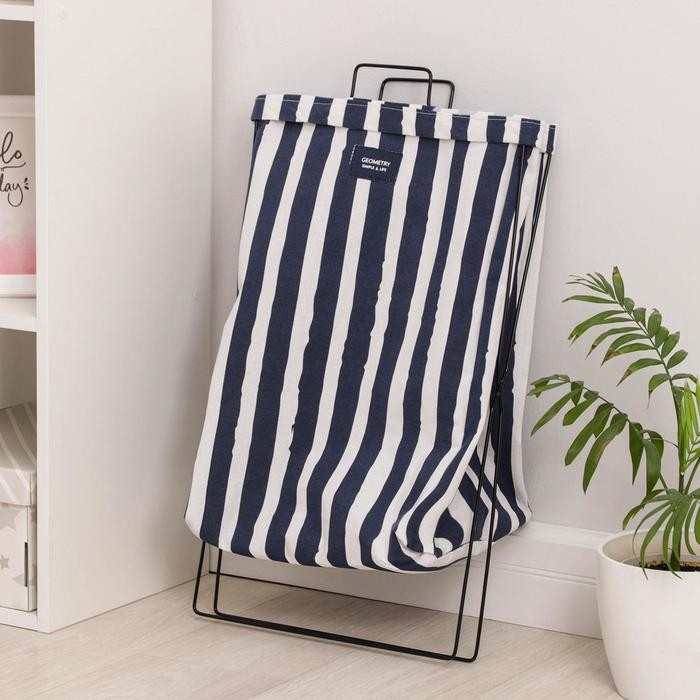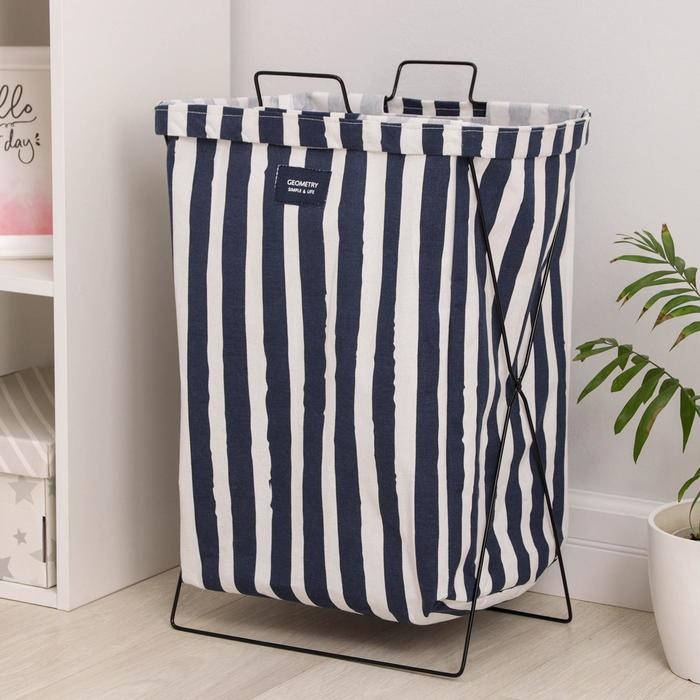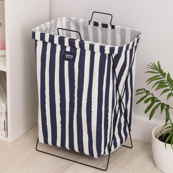 Корзина универсальная складная «Линии», 40×26×50 см, цвет бело-синий