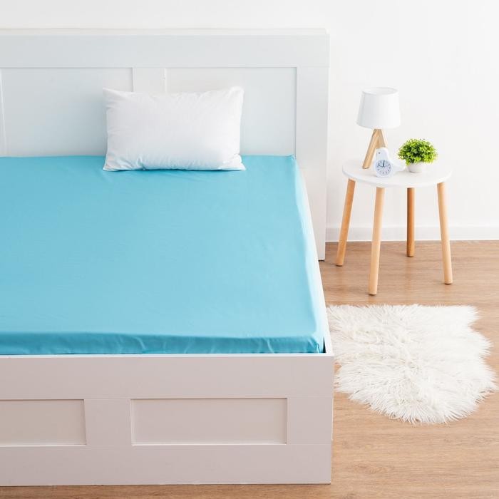 Простыня на резинке Этель 160*200*25 см, цв. голубой, 100% хлопок, мако-сатин, 128 г/м²