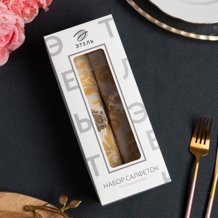 Набор салфеток с декоративными кольцами «Вензель» 46×46 см — 2 шт, 100% хл, саржа 190гр/м2