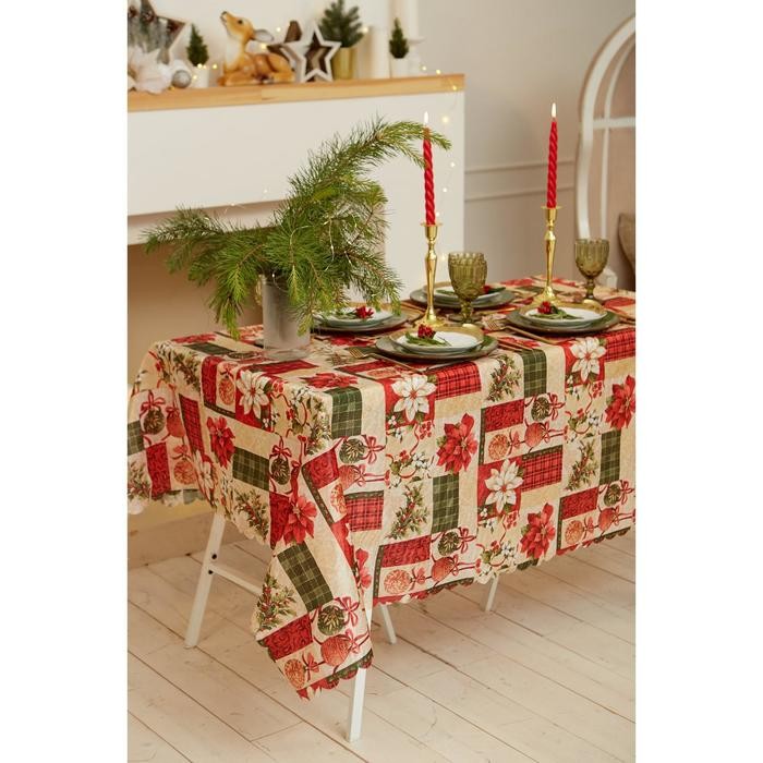Скатерть Доляна «Новый год: Новогодние игрушки» 145*300 +/- 2 см, 100% п/э