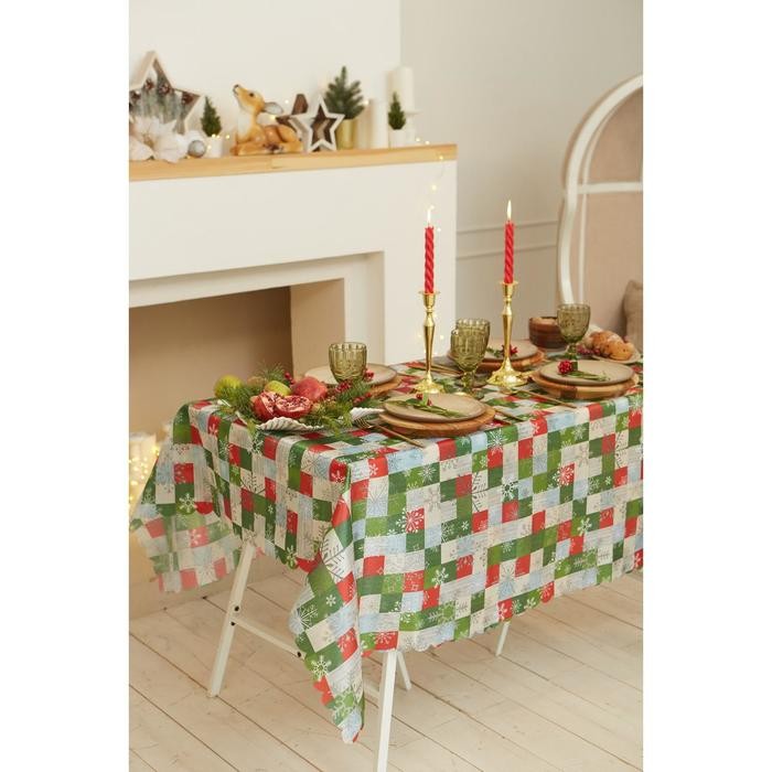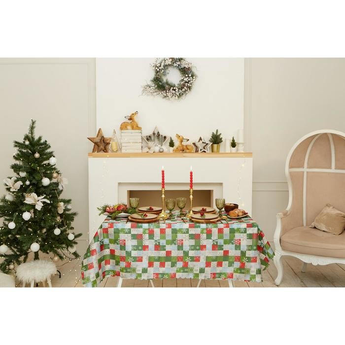 Скатерть Доляна «Новый год: Новогодняя мозаика» 145*220 +/- 2 см, 100% п/э