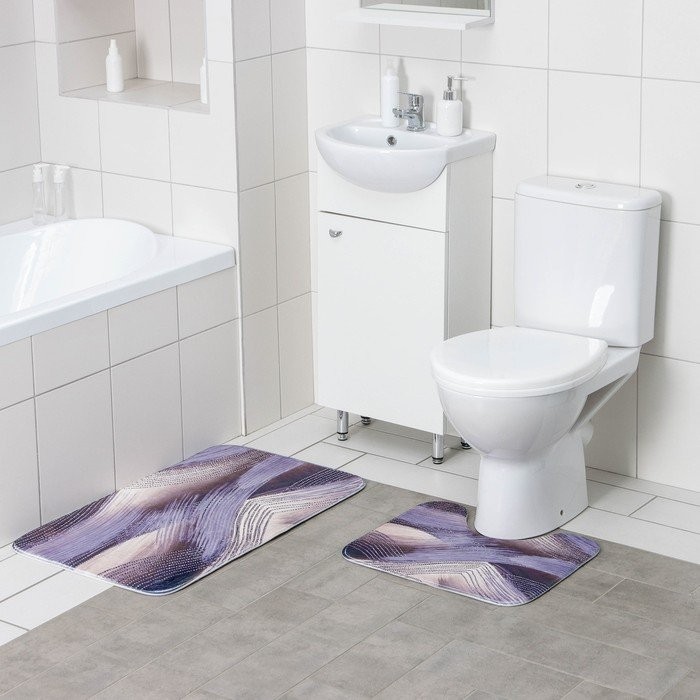 Набор ковриков для ванны и туалета Доляна «Саванна», 2 шт: 50×80, 40×50 см