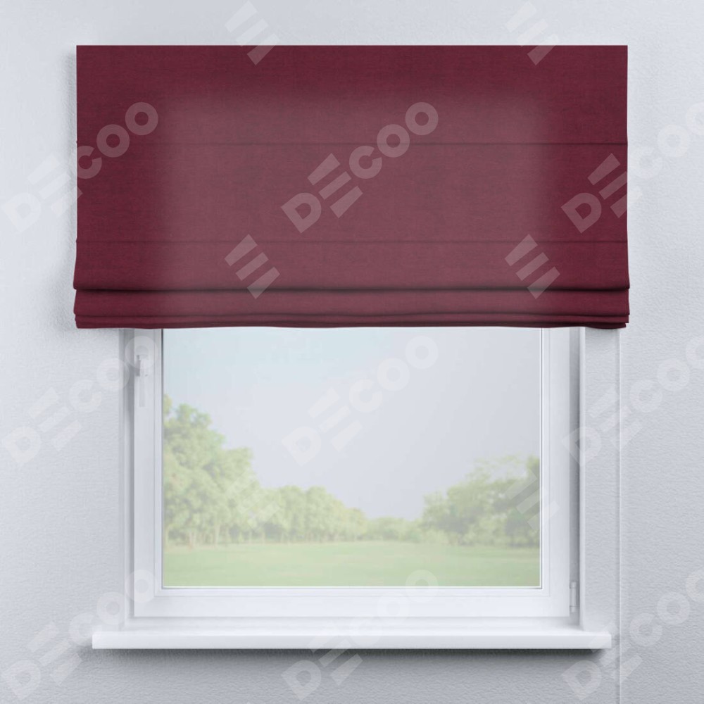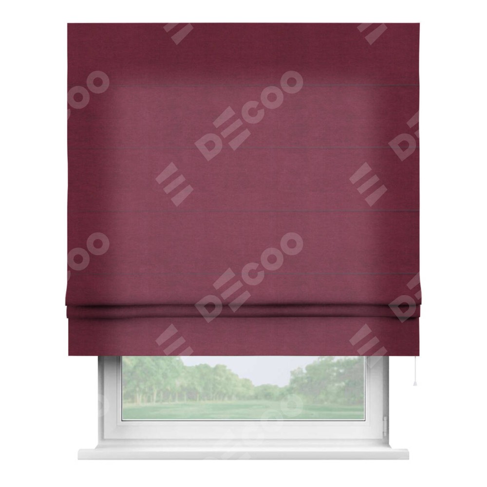 Римская штора производителя «Cortin», используется для проёма, пошита из ткани вельвет бордовый, артикул ткани 85553. Имеет универсальный механизм и подходит для монтажа: на потолок, на стену и в нишу.