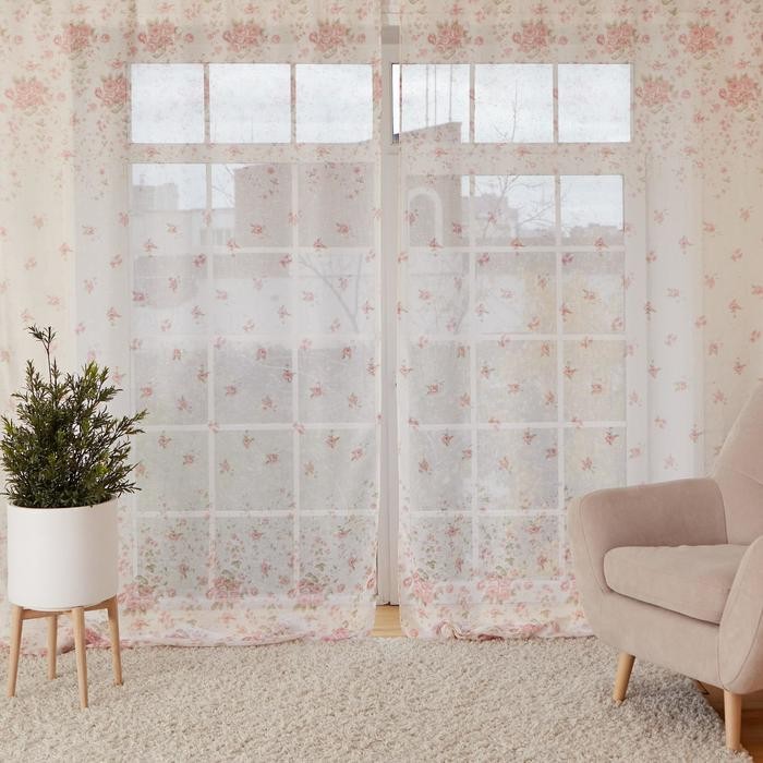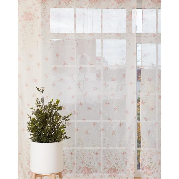 Штора тюлевая «Этель» 260*250 см Пионы б/утяжелителя,100% п/э