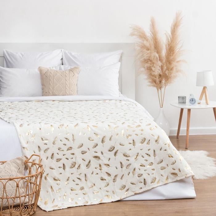 Плед Этель «Перья» 150*200 см,100% п/э, корал-флис 220 гр/м2