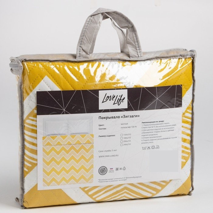 Покрывало LoveLife евро «Зигзаги» цв. желтый, 200*210±5см, микрофайбер, 100% п/э