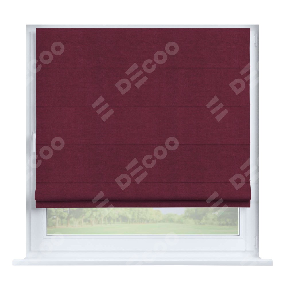 Римская штора производителя «Cortin», устанавливается на створку окна, пошита из ткани вельвет бордовый, артикул 85553. Штора шьётся по индивидуальным размерам, для данного типа римской шторы возможная ширина от 35 до 150 см., высота до 250 см.