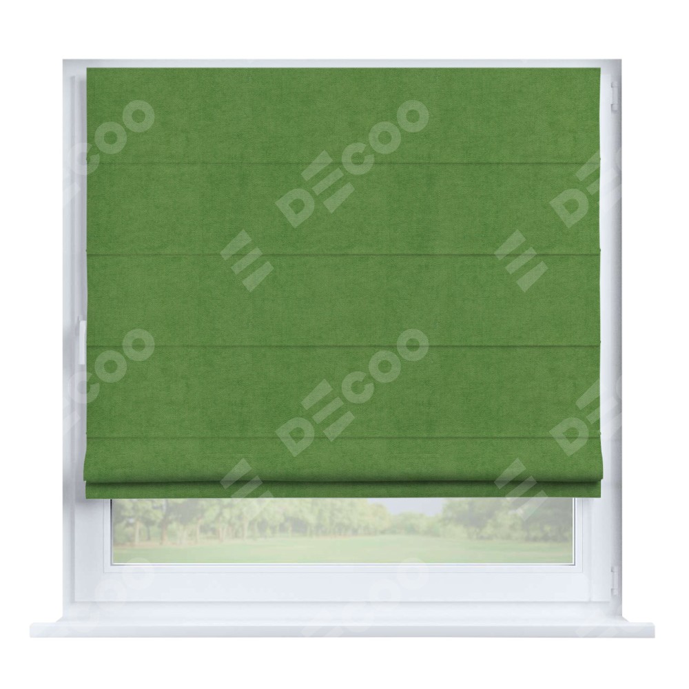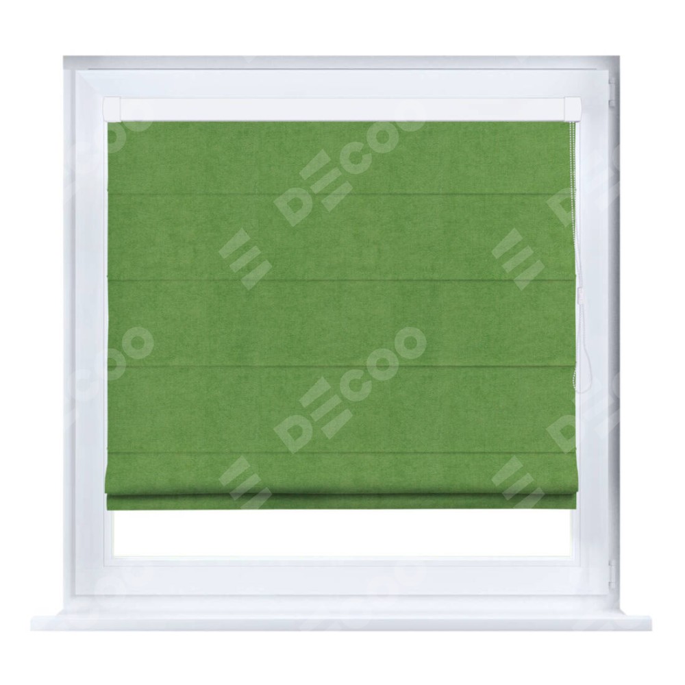 Римская штора производителя «Cortin», устанавливается на створку окна, пошита из ткани вельвет салатовый, артикул 87072. Штора шьётся по индивидуальным размерам, для данного типа римской шторы возможная ширина от 35 до 150 см., высота до 250 см.