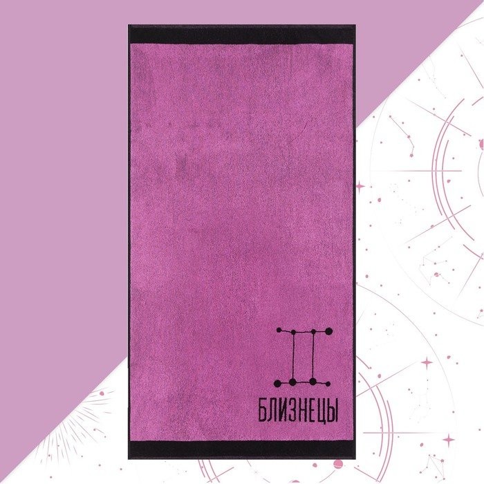 Полотенце махровое Этель «Знаки зодиака: Близнецы» розовый, 67×130 см, 420 гр/м2, 100% хлопок