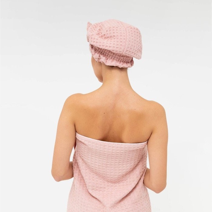 Набор для бани и ванной Этель «Вафля» полотенце 70*140 см+чалма 21*25 см, цв.розовый