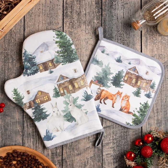 Набор Кухонный «Forest animals», варежка-прихватка 20х28см, прихватка 19х19см, 100% хл