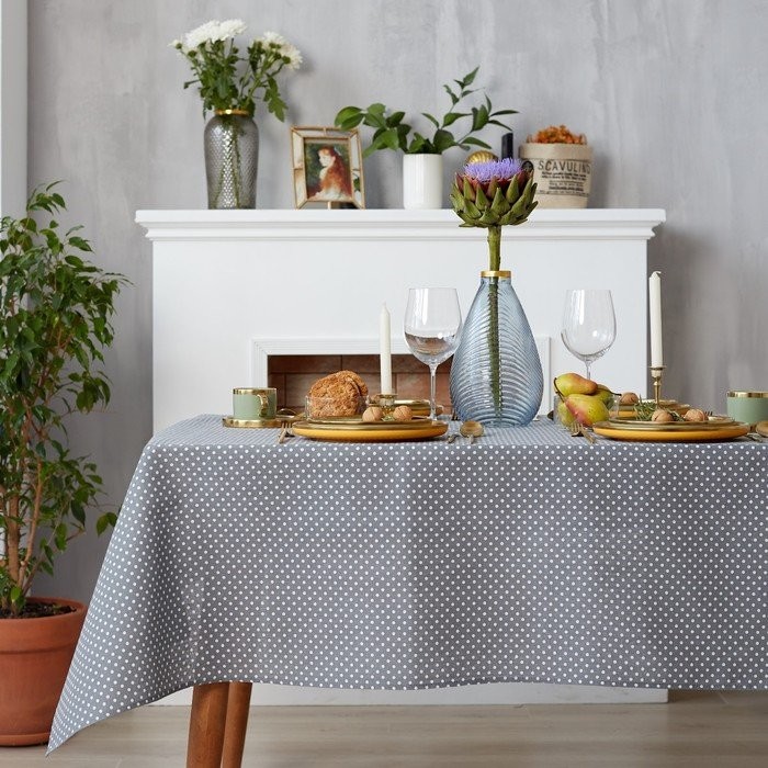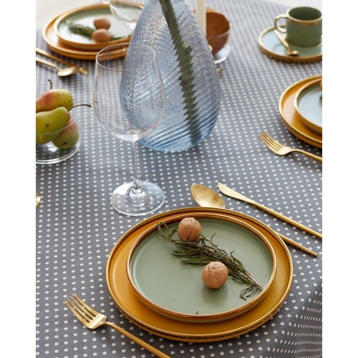 Набор Доляна скатерть 145х200см/салфетки 40х40см 4шт, Горох сер, 100%пэ, рогожка 200 гр/м