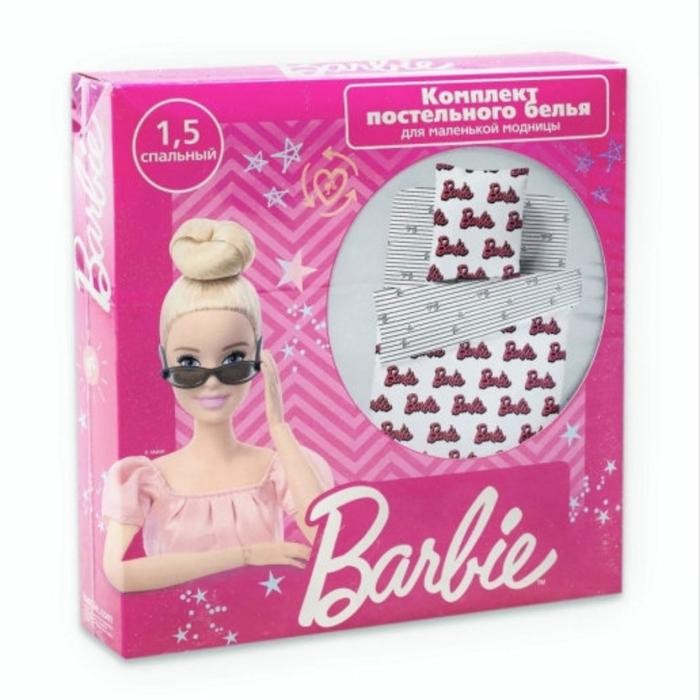Постельное бельё 1,5сп Barbie белоземельный 145×215, 150×215, 70×70 см-1шт