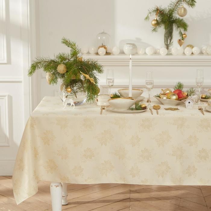 Скатерть Этель «Пуансеттия» цв.золото, 142*110 +/-3 см, 115 ±10 гр,100% п/э