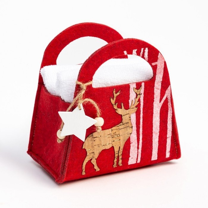 Набор полотенец в корзинке Экономь и Я «Снежный лес» Вид 1, 30×30 см-2 шт, 100% хл, 320г/м2