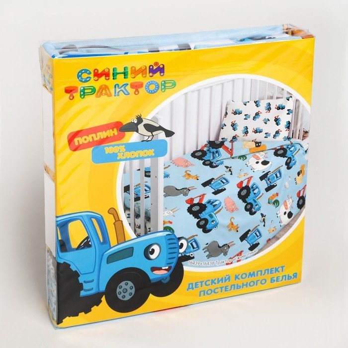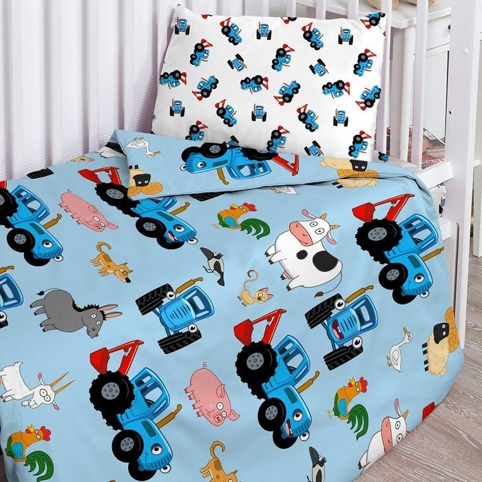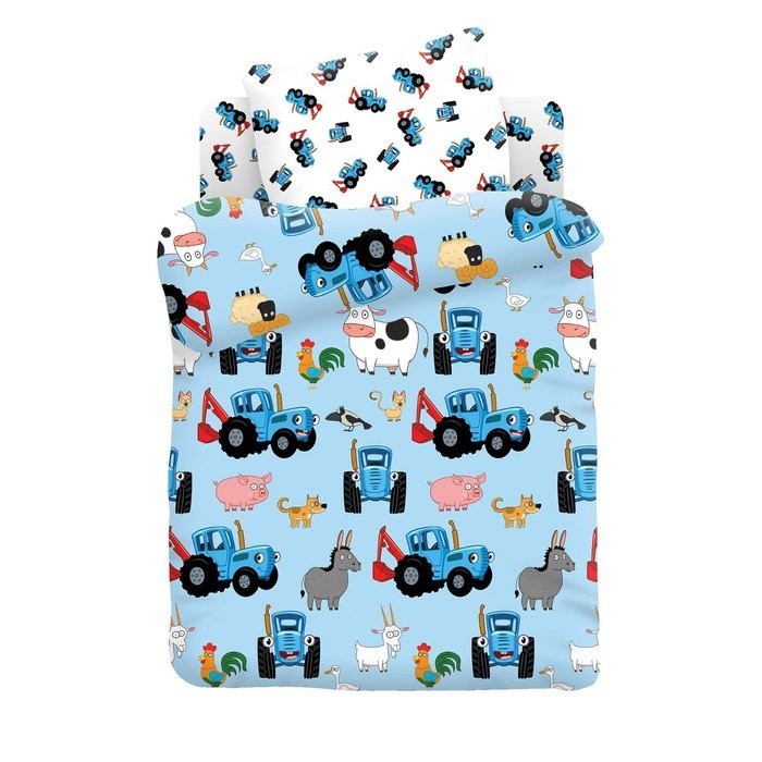 Постельное бельё детское Синий трактор «Трактор и животные» 110×150, 112×147, 40х60см-1шт, поплин 105г/м
