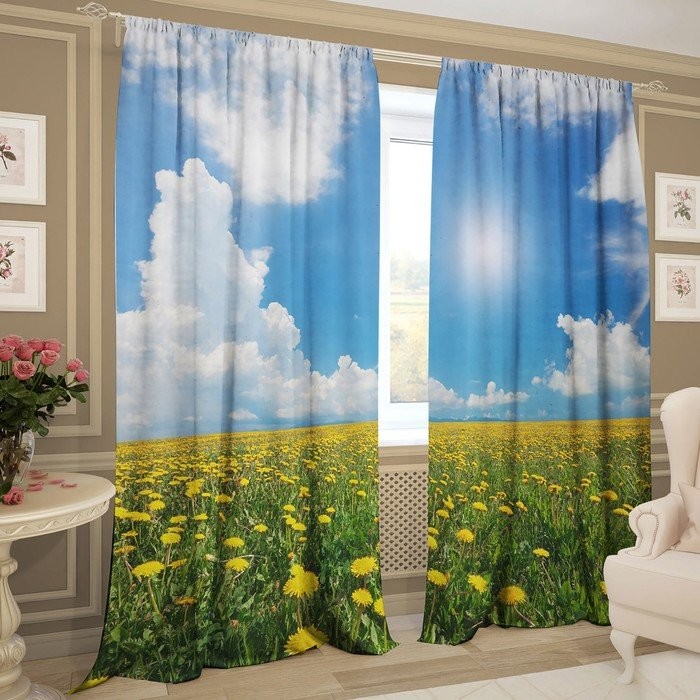 Комплект штор Желтые одуванчики 147×267 +/- 3см 2шт, габардин, п/э