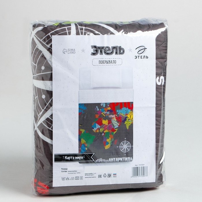 Покрывало детское Этель 1,5 сп «Карта мира», 145×210 см, микрофибра