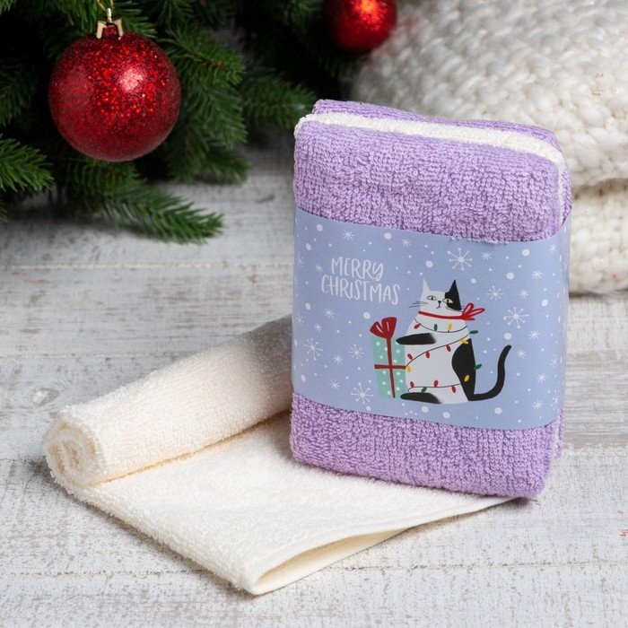 Набор махровых полотенец Этель «Кот» 30×30 см-3шт, 340гр/м2, 100% хлопок