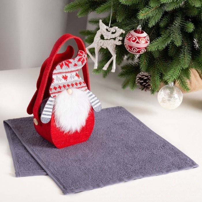 Полотенце в корзинке Экономь и Я «Гномик» 30*60 см, цв. серый, 100%хл, 320 г/м2