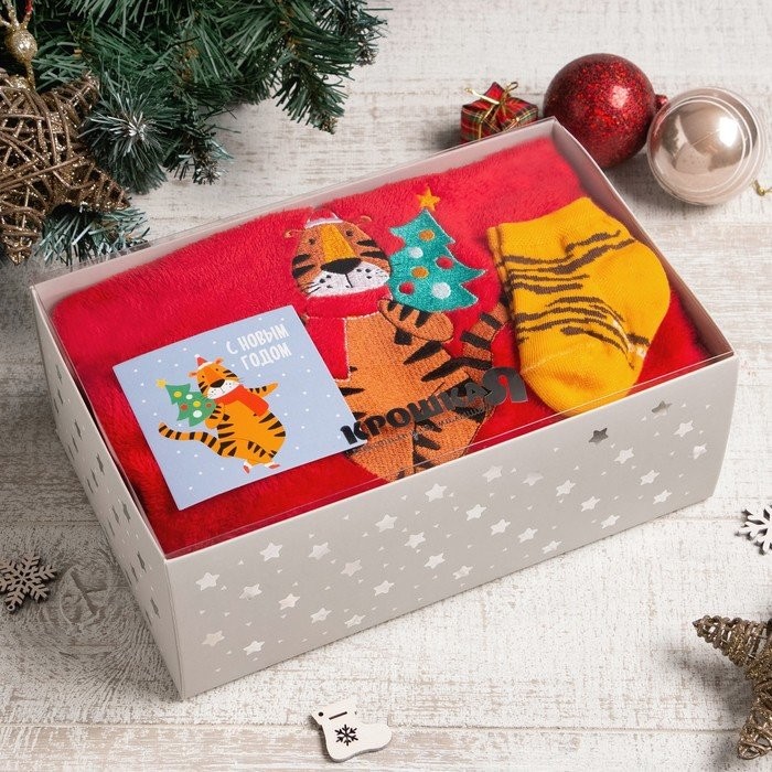 Набор Крошка Я «Тигруля», плед 90х100см, носки 10−12 см