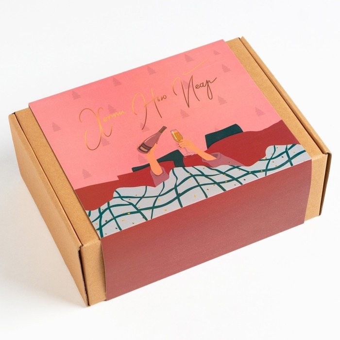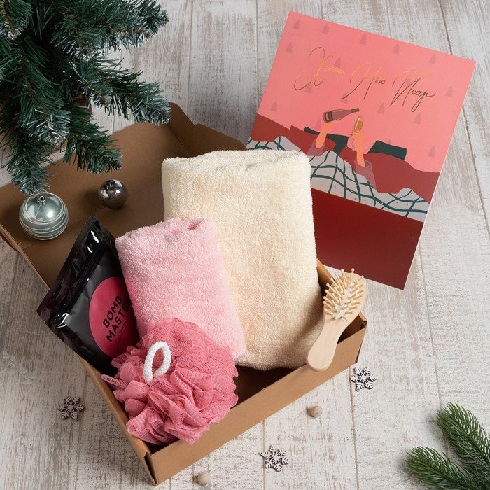 Новогодний подарочный набор «Хэппи нью йеар» полотенце 50х90см,30х60см и аксессуары (5 предм)