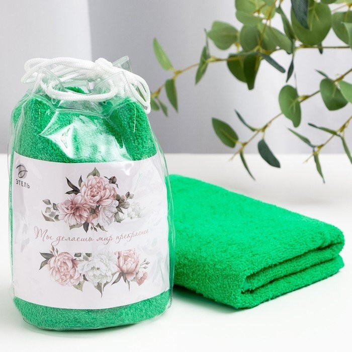 Полотенце подарочное Этель «Ты делаешь мир прекраснее» зеленый, 50х90см, 100%хл, 340г/м2