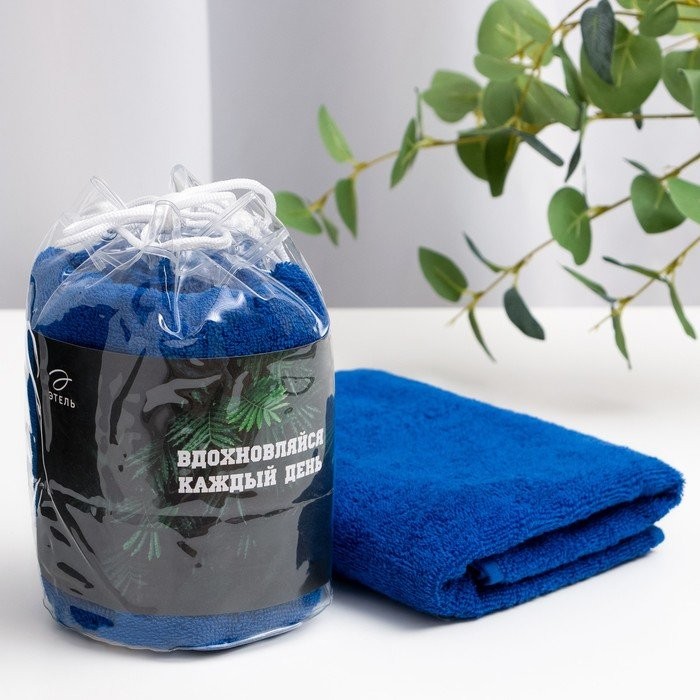 Полотенце подарочное Этель «Вдохновляйся» цв.синий, 50х90см, 100% хл, 340 г/м2