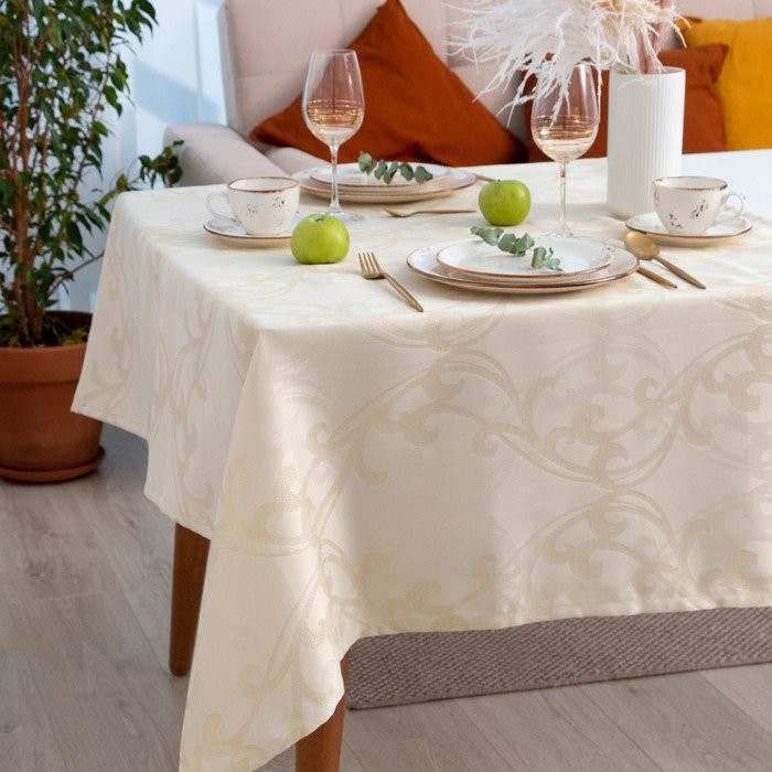 Скатерть Этель «Узор» цв.бежевый, 142*180 +/-3 см, 115 ±10 гр,100% п/э