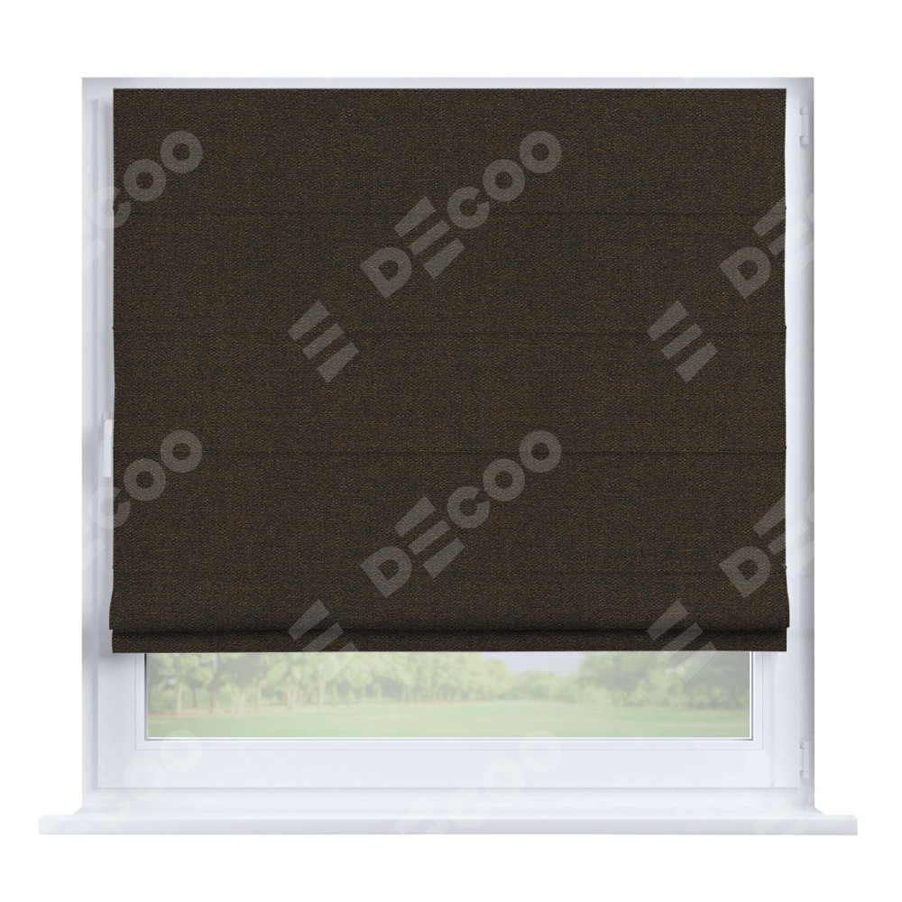 Римская штора производителя «Cortin», устанавливается на створку окна, пошита из ткани лён тёмно-коричневый, артикул 53444. Штора шьётся по индивидуальным размерам, для данного типа римской шторы возможная ширина от 35 до 150 см., высота до 250 см.