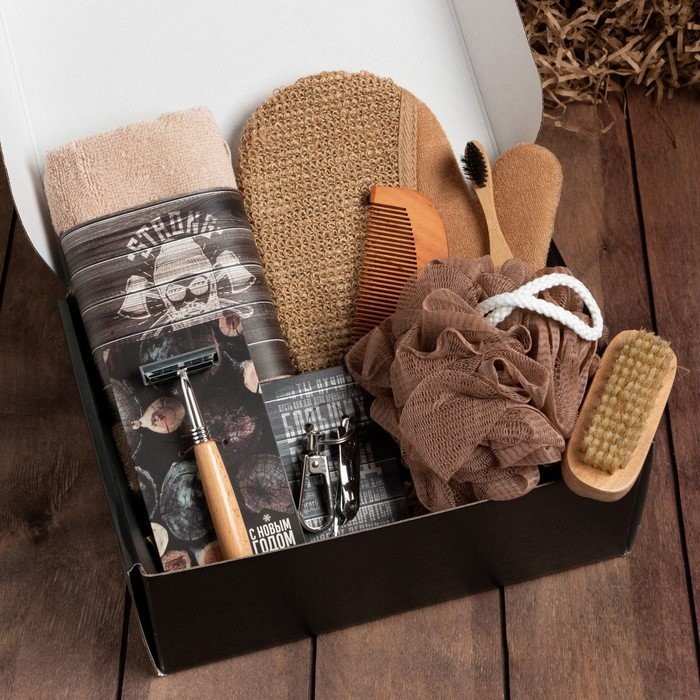 Подарочный набор новогодний Этель Strong man полотенце и аксессуары (7 предм)