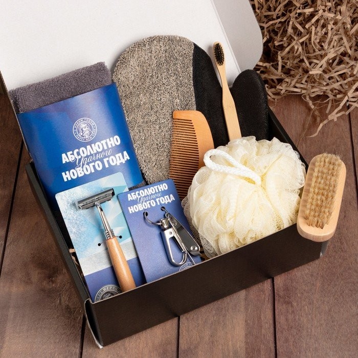 Мочалка для тела, мочалка-варежка, станок бритвенный, зубная щётка, щетка, брелок маникюрный, полотенце махровое 30х60см, расческа 13*5 см