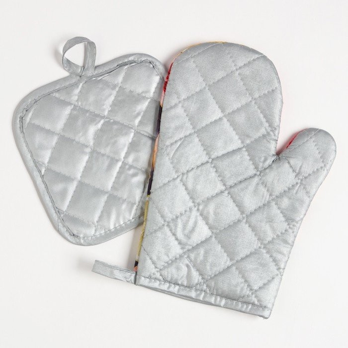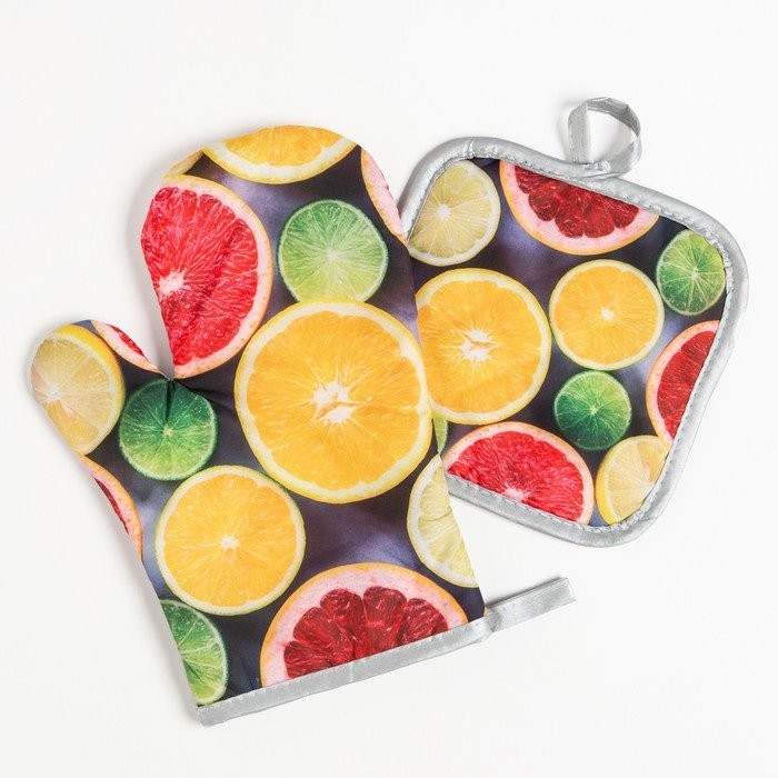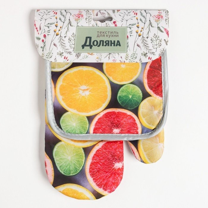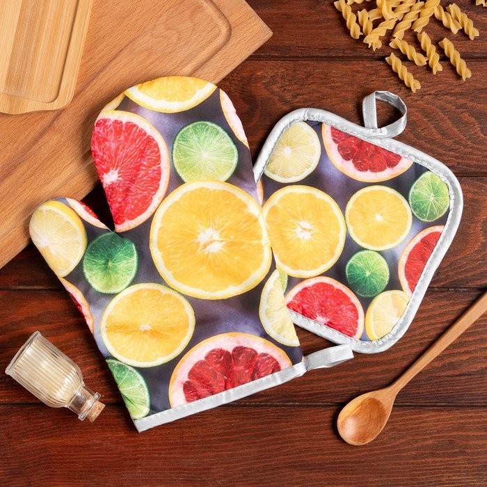 Кухонный набор (2 предмета) Доляна «Цитрусовые», прихватка 17×17 см, варежка 26×16 см, 100% п/э