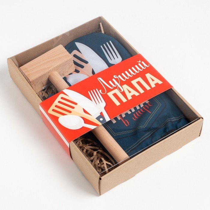 Кухонныйнабор «Лучший папа», варежка-прихватка 20х28см, молоток деревян.
