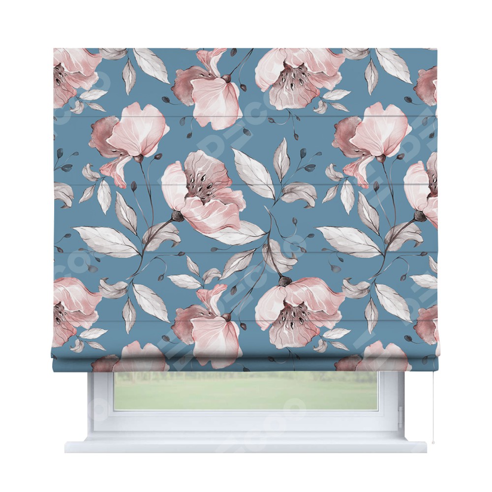 Римская штора производителя «Cortin», используется для проёма, пошита из ткани блэкаут с нанесением сублимационной печати «Розовая лагуна». Имеет универсальный механизм и подходит для монтажа: на потолок, на стену и в нишу.