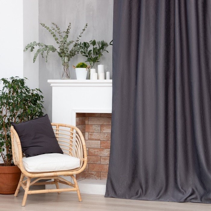 Штора портьерная Этель «Фактура"цв.серый,на шторн.ленте 145*265 см,100% п/э
