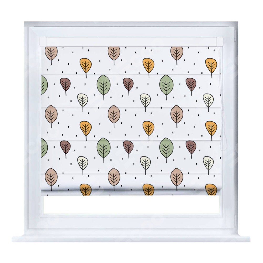 Римская штора производителя «Cortin», устанавливается на створку окна, пошита из ткани блэкаут с нанесением сублимационной печати «Простые деревья». Штора шьётся по индивидуальным размерам, для данного типа римской шторы возможная ширина от 35 до 150 см., высота до 250 см.