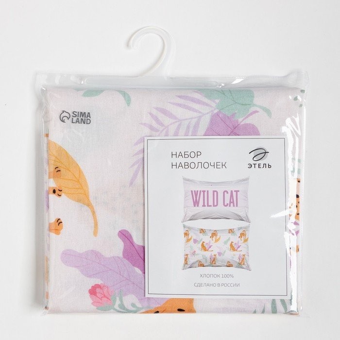 Комплект наволочек «Этель» Wild cat 50×70 см — 2 шт, 100% хлопок, бязь