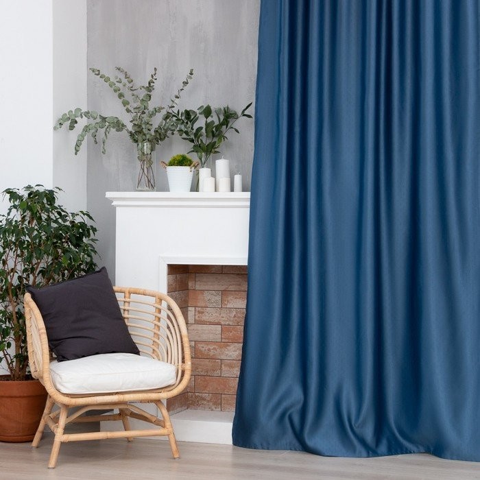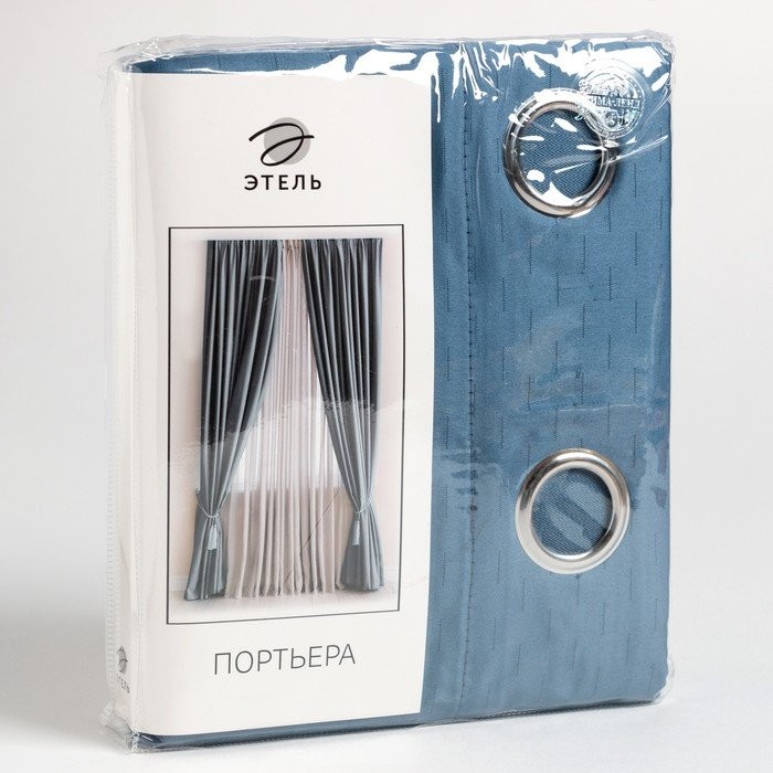 Штора портьерная Этель «Штрихи» цв.синий,на люверсах 250*265 см, 100% п/э