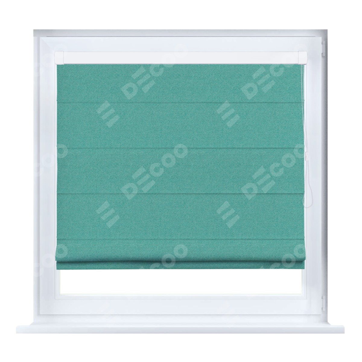 Римская штора кассетного типа, производителя «Cortin», устанавливается только на пластиковые окна и прилегает к стеклопакету, пошита из ткани лён димаут бирюзовый, артикул 23.