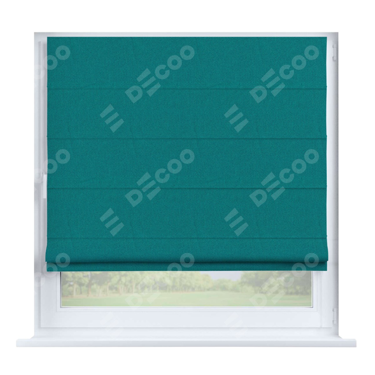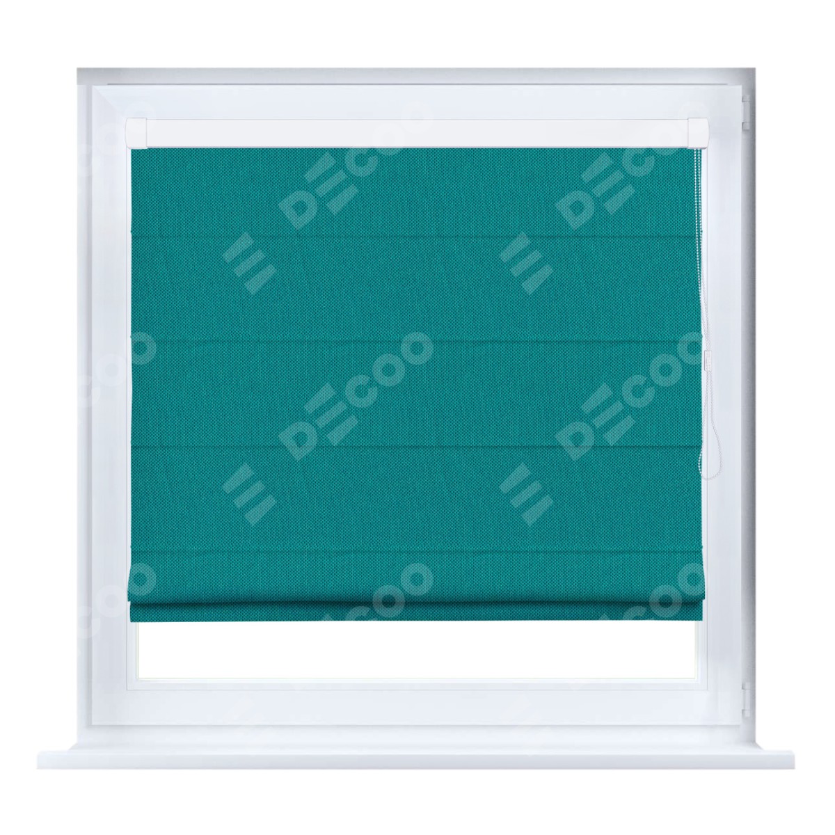 Римская штора производителя «Cortin», устанавливается на створку окна, пошита из ткани лён димаут тёмно-бирюзовый, артикул 318. Штора шьётся по индивидуальным размерам, для данного типа римской шторы возможная ширина от 35 до 150 см., высота до 250 см.