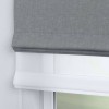 Римская штора день-ночь производителя «Cortin», используется для проёма, пошита из двух полотен, с лицевой стороны рогожка димаут тёмно-серый артикул 80418, вторая ткань тюль (по стандарту комплектуется тюль белого цвета артикул V-01). Имеет универсальный механизм и подходит для монтажа: на потолок, на стену и в нишу.