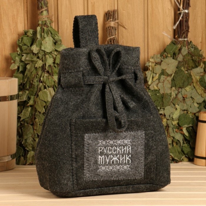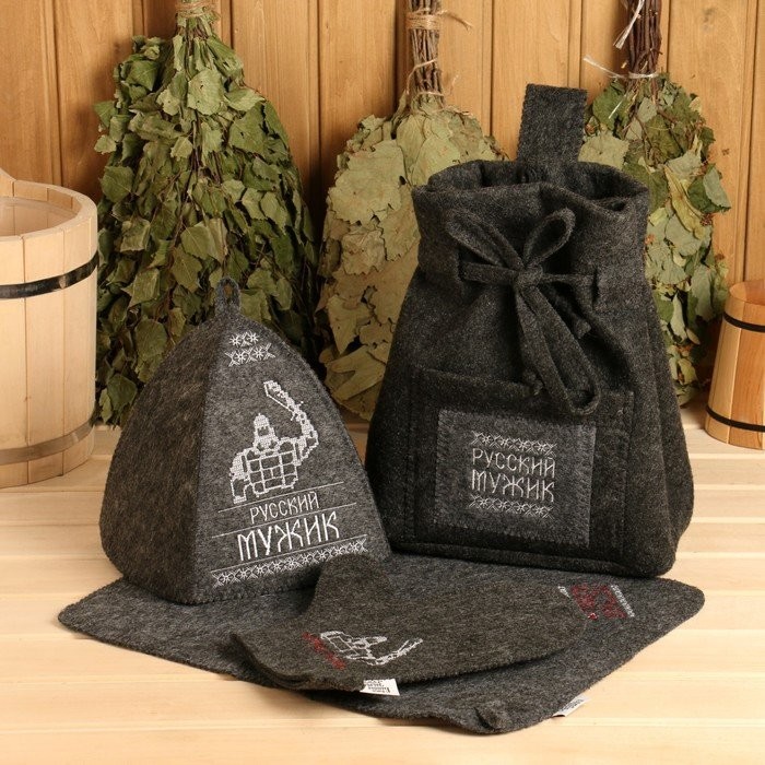 Набор для бани 4 предмета «Русский мужик» шапка, коврик, рукавица, портфель
