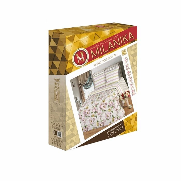 Постельное бельё евро Миланика Вивьен 200х217см, 217×240 см, 70х70см 2 шт, поплин 117г/м, хлопок 100%