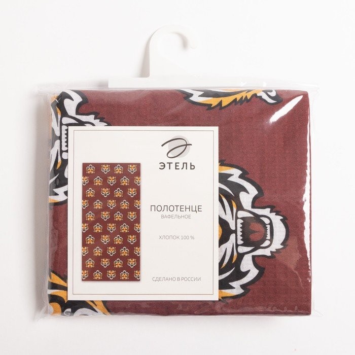 Полотенце Этель «Тигр» бордовый 70×146 см, 100% хлопок 160гр/м2