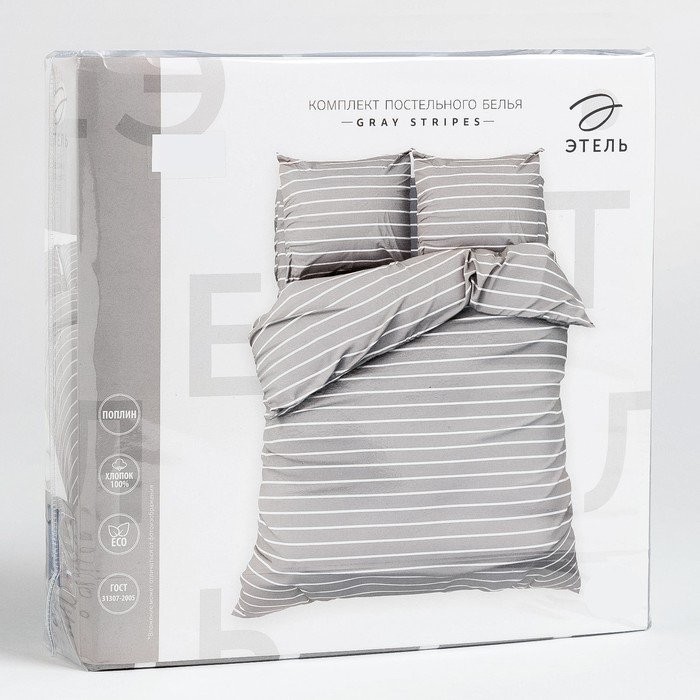 Постельное бельё Этель Дуэт Gray stripes 143х215см-2шт,220х240см,70х70см-2шт, 100% хлопок, поплин
