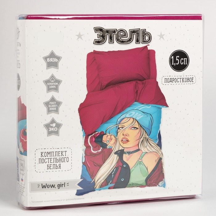 Постельное бельё Этель 1,5 сп «Wow, girl» 143×215 см, 150×214 см, 50×70 см -1 шт, 100% хлопок, бязь