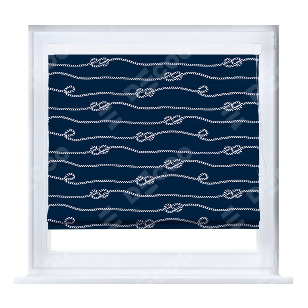 Римская штора производителя «Cortin», устанавливается на створку окна, пошита из ткани блэкаут с нанесением сублимационной печати «Морской узел». Штора шьётся по индивидуальным размерам, для данного типа римской шторы возможная ширина от 35 до 150 см., высота до 250 см.